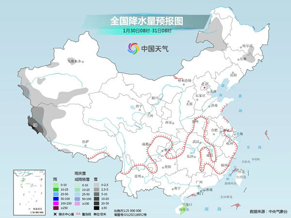 今明天,中东部大部地区降水稀少,将以晴或多云天气为主。而在西藏西南部阿里地区有大雪,局地暴雪,最强降雪时段为30日。